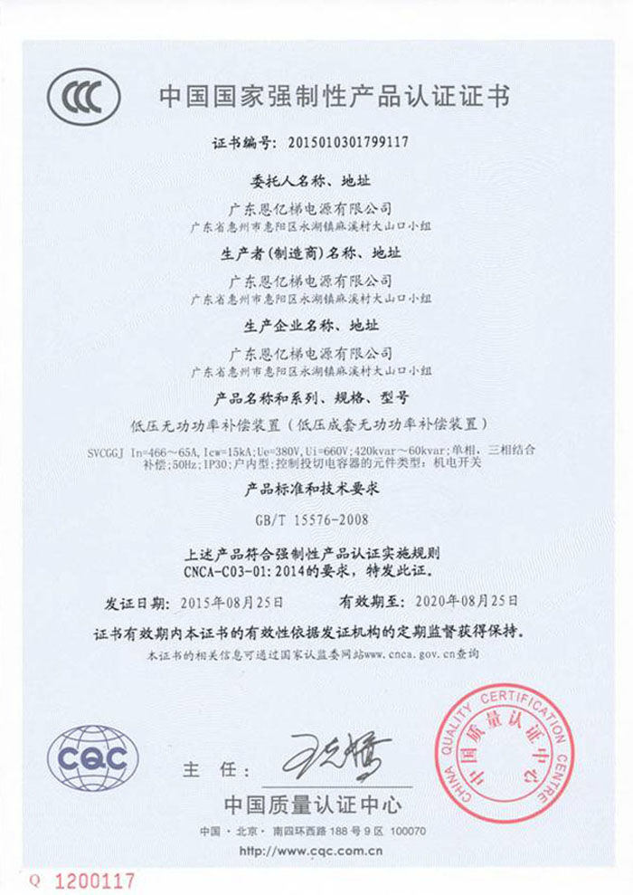 中國(guó)國(guó)家強(qiáng)制性產(chǎn)品認(rèn)證(低壓無功功率補(bǔ)償裝置)